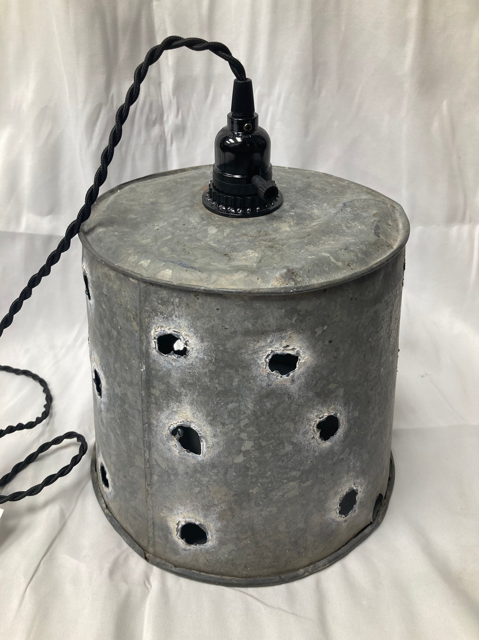 Add farmhouse charm to your space with this Boxwood Cottage & Home Pendant Light. Made from galvanized metal with hand-punched holes, this unique piece casts a warm, rustic glow that's perfect for kitchens, dining areas, or cozy cottages.