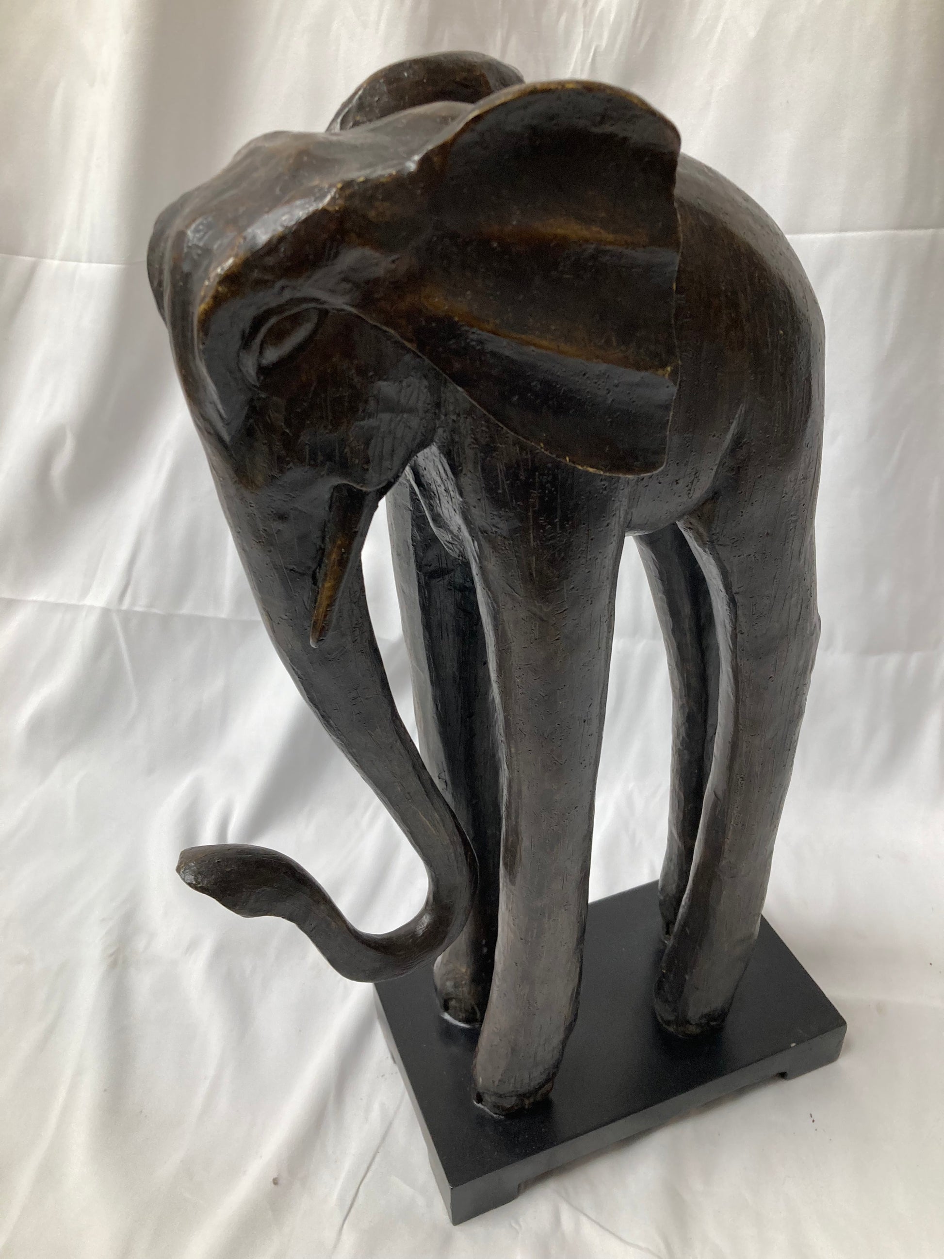 This carved wooden elephant statue brings a touch of global style and natural charm to any space. Standing tall on a sturdy base, the piece features smooth lines, deep brown tones, and an elegant elongated form that highlights its handmade appeal. A striking décor accent, it can be displayed as a standalone statement or incorporated into a collection of artistic pieces.